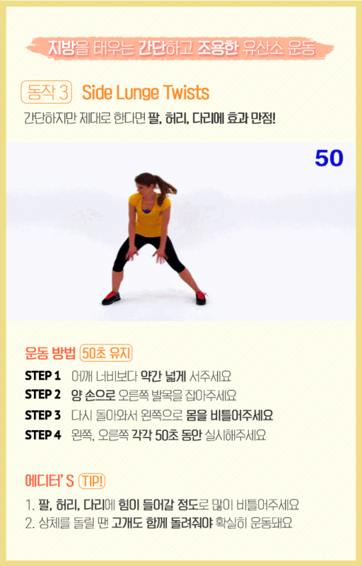 지방을 태우는 간단하고 조용한 유산소운동법 8가지