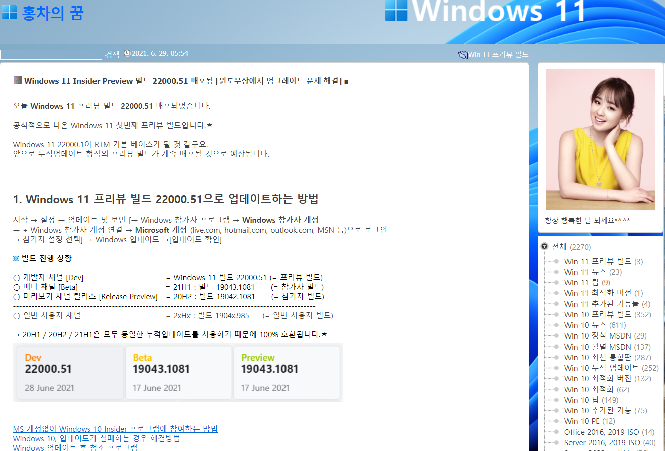 그럼 윈도우11은 어디서 구하냐면~~~ 음~~~ 대단하신 홍차의 꿈 님의 홈페이지에서 구하시면 됩니다^^