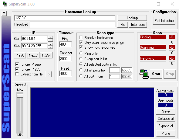 IP 시작범위 지정 스캔범위를 지정하여 빨리체크할 것이냐 아니면 꼼꼼히 체크할것이냐 정리해서