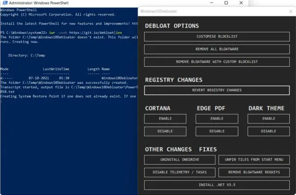 iwr -useb https://git.io/debloat|iex