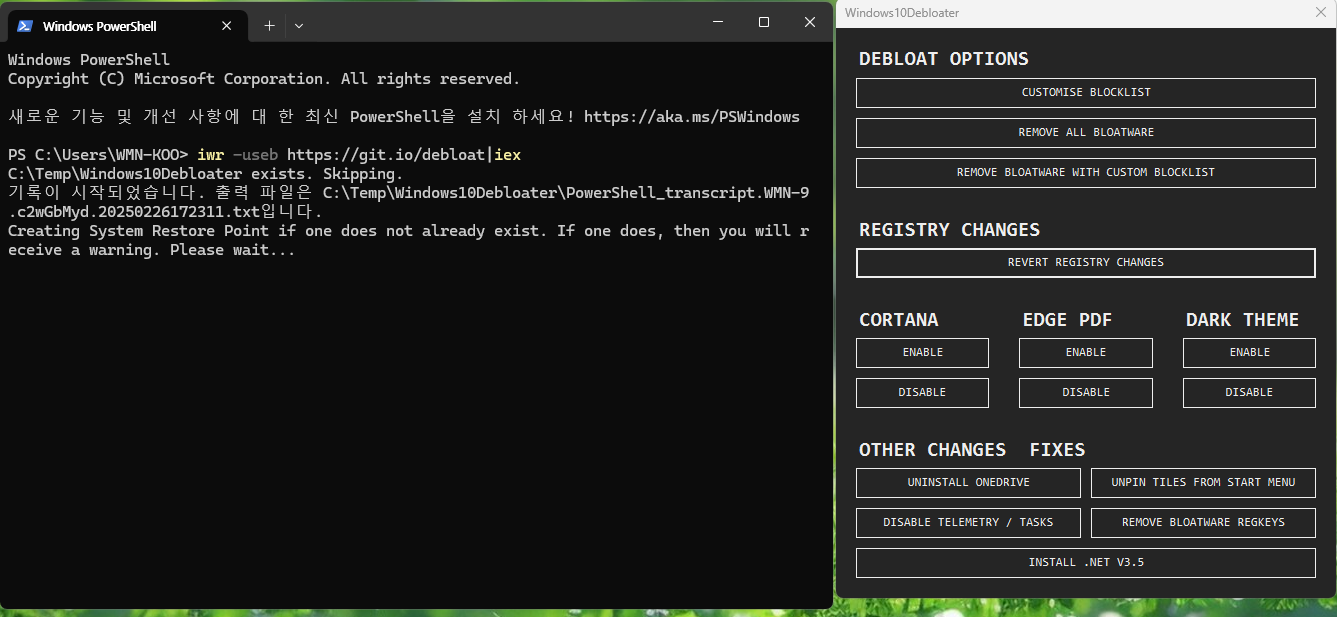 오른쪽창에 windows10Debloater 창이 자동으로 뜹니다.